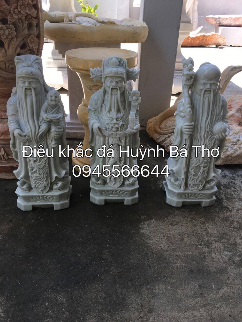 Bộ Phúc Lộc Thọ bằng đá trắng cao 30cm đến 1m tại cơ sở Điêu khắc đá non nước Huỳnh Bá Thơ.