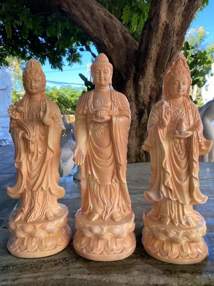 Bộ Tam Thế Phật đá vàng cà rốt tự nhiên cao 40cm