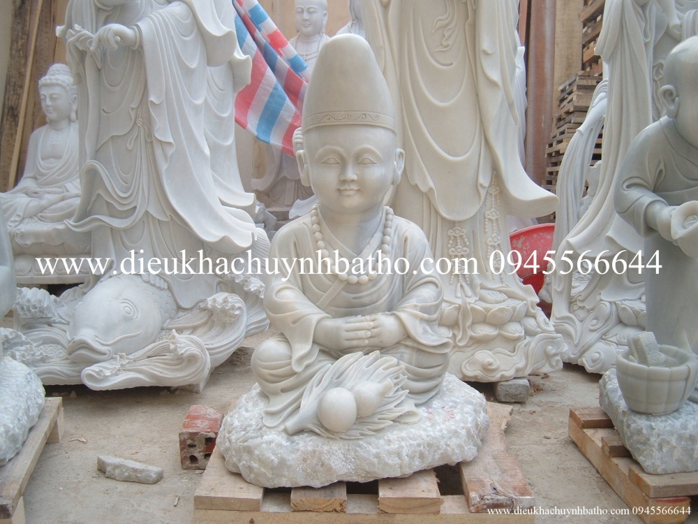 Tượng Bồ tát Thiên Thủ Thiên Nhãn cưỡi rồng đá trắng