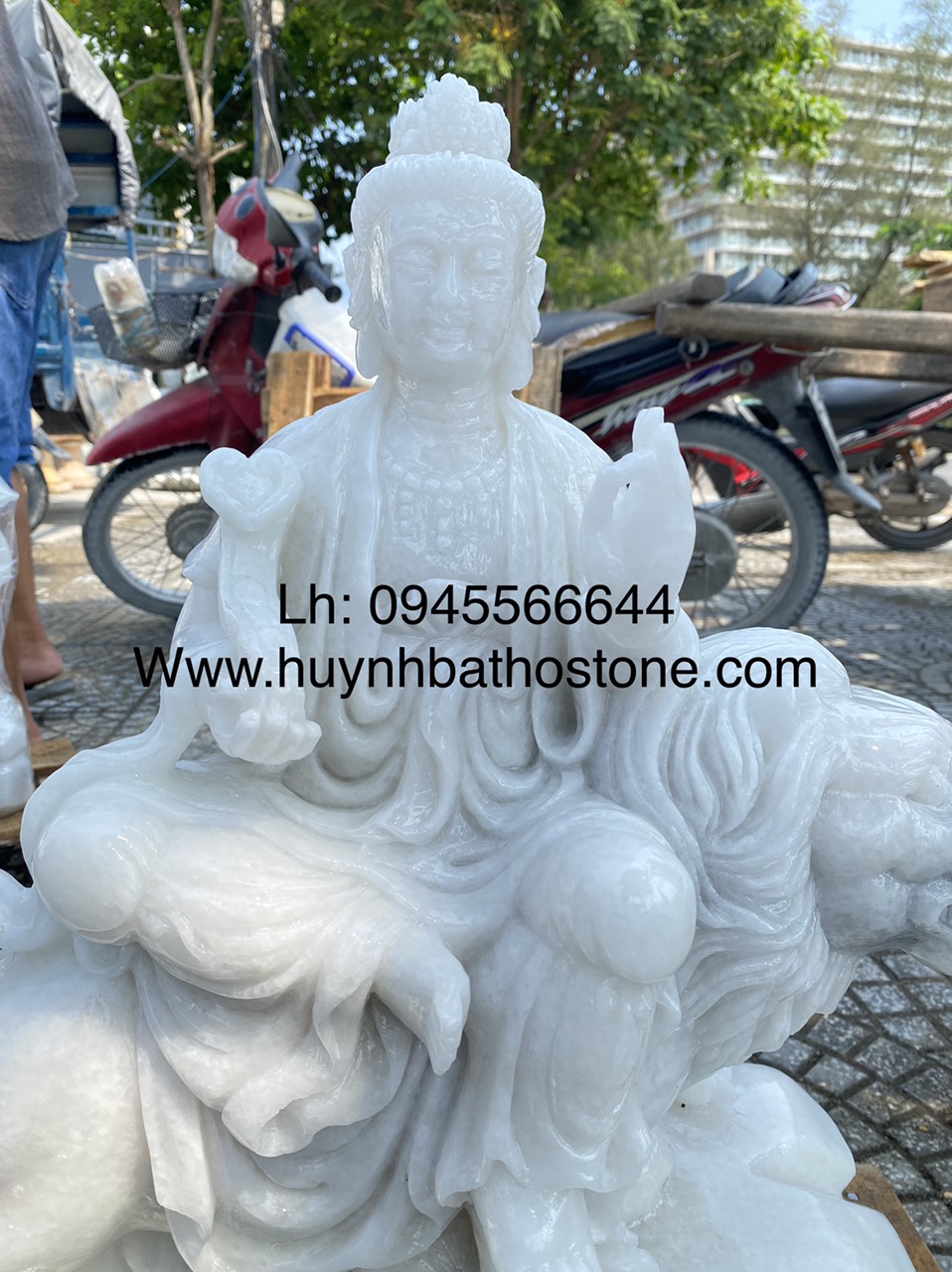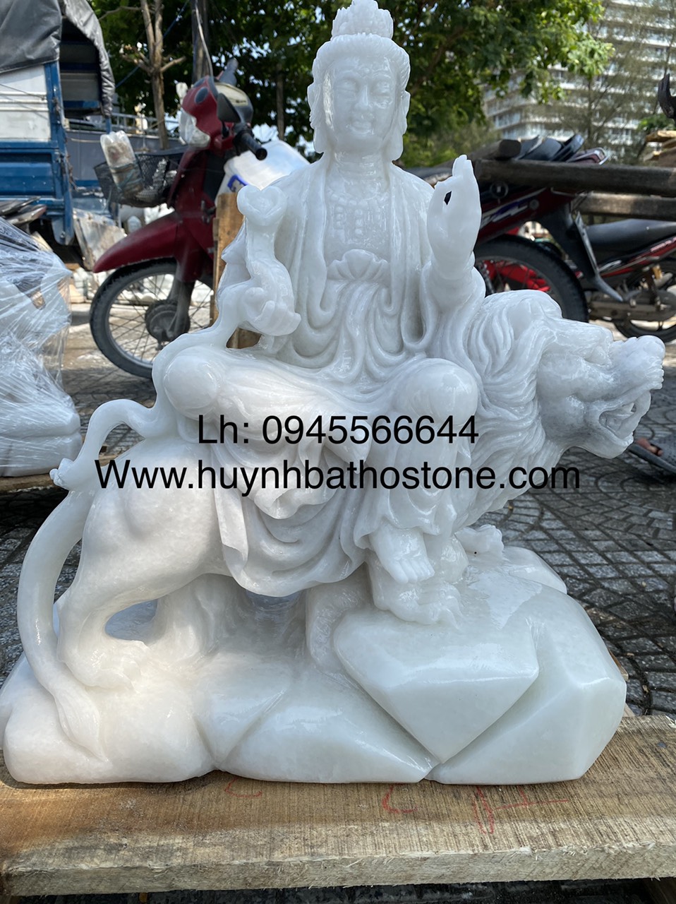 Tượng Văn Thù bồ tát 50cm bằng đá nguyên khối.