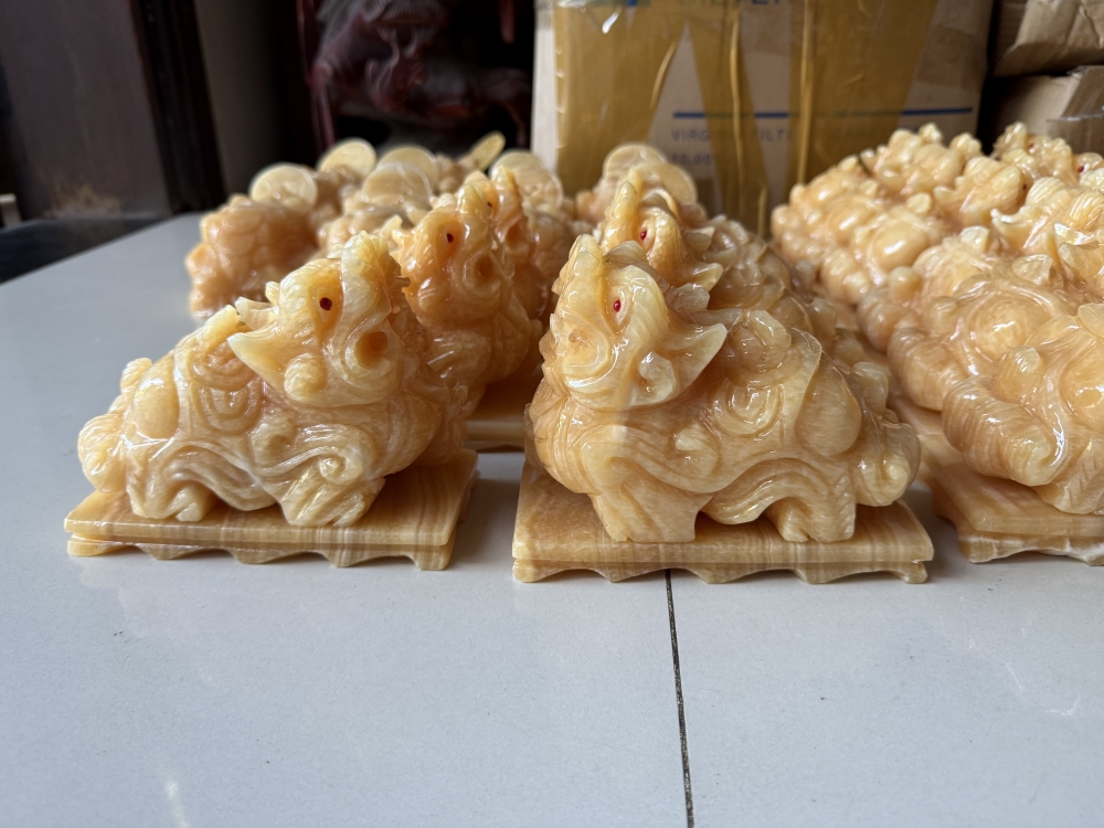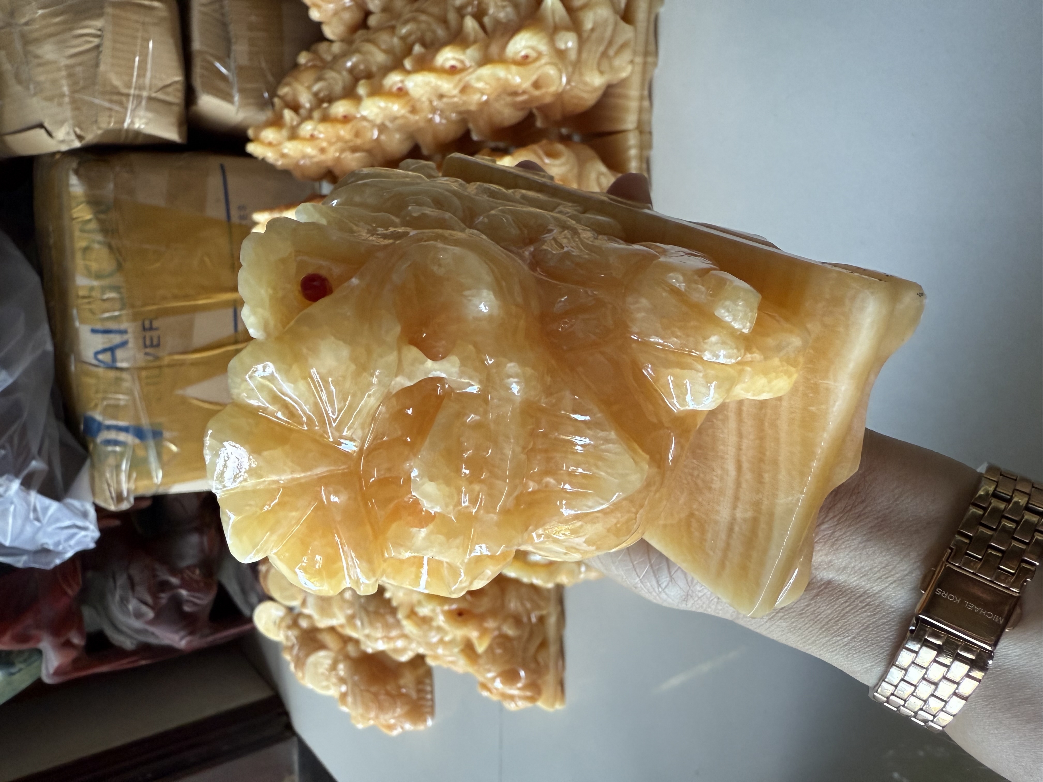 Đồng tiền đá ngọc màu vàng phong thuỷ may mắn, thu hút năng lượng cho gia chủ.