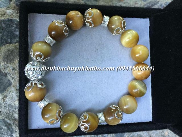 Vòng đá mắt hổ vàng thiên nhiên mix pk bạc ta