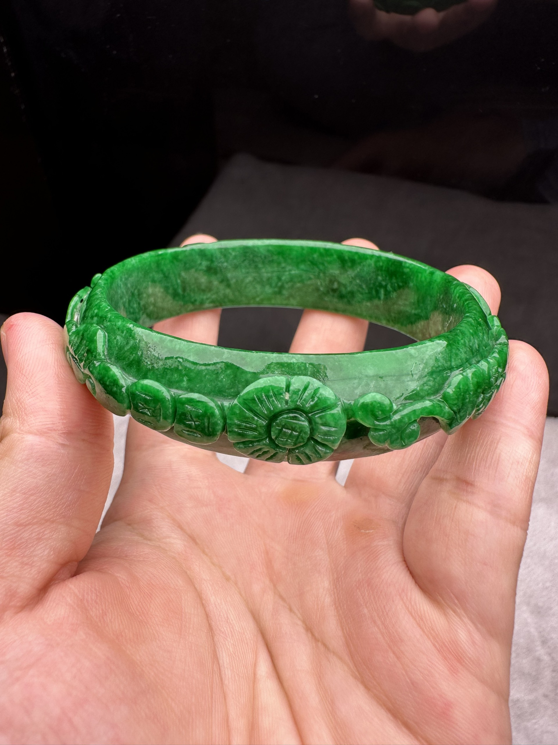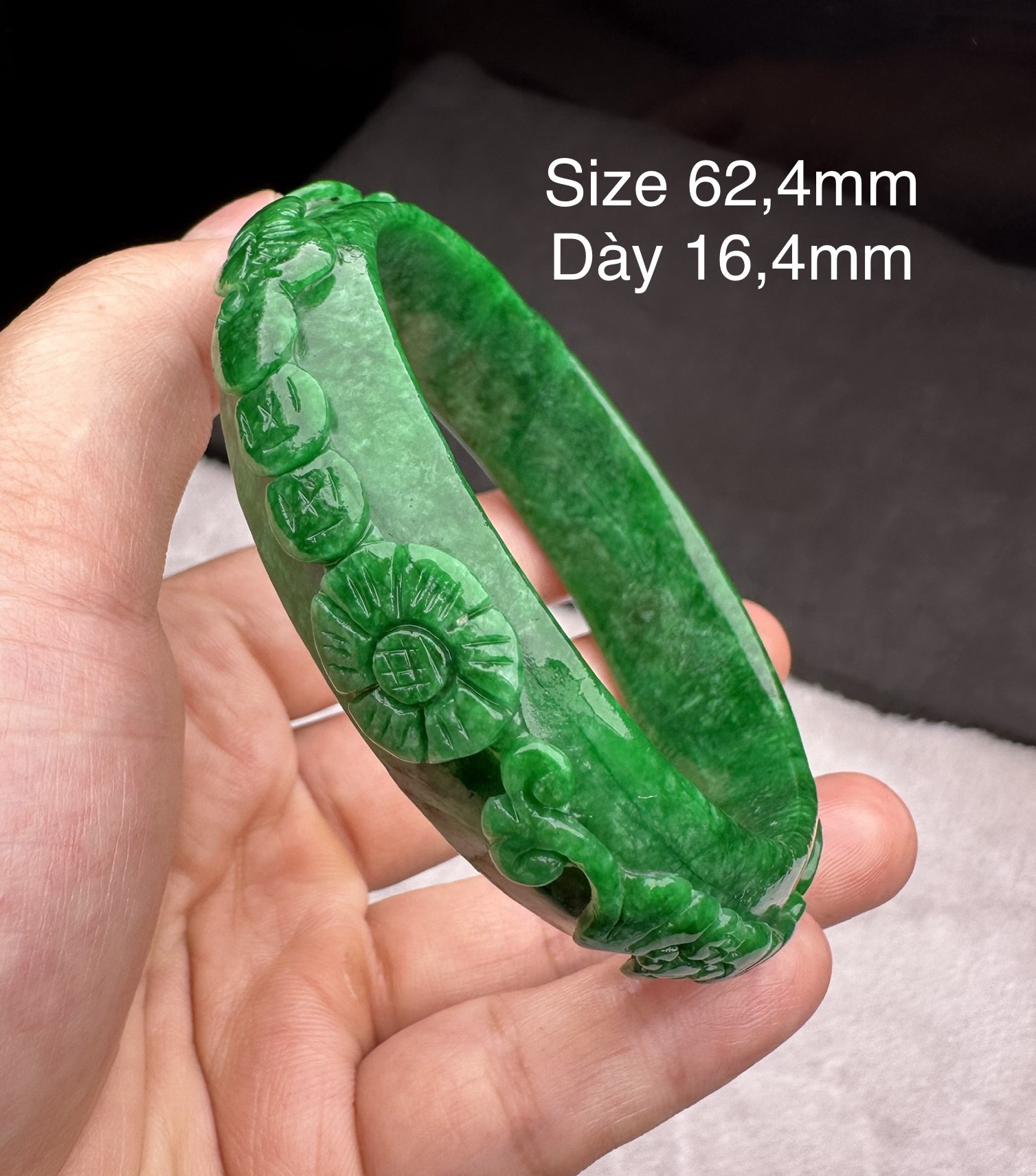 Vòng tay Ngọc bản liền chạm họa tiết đẹp.
