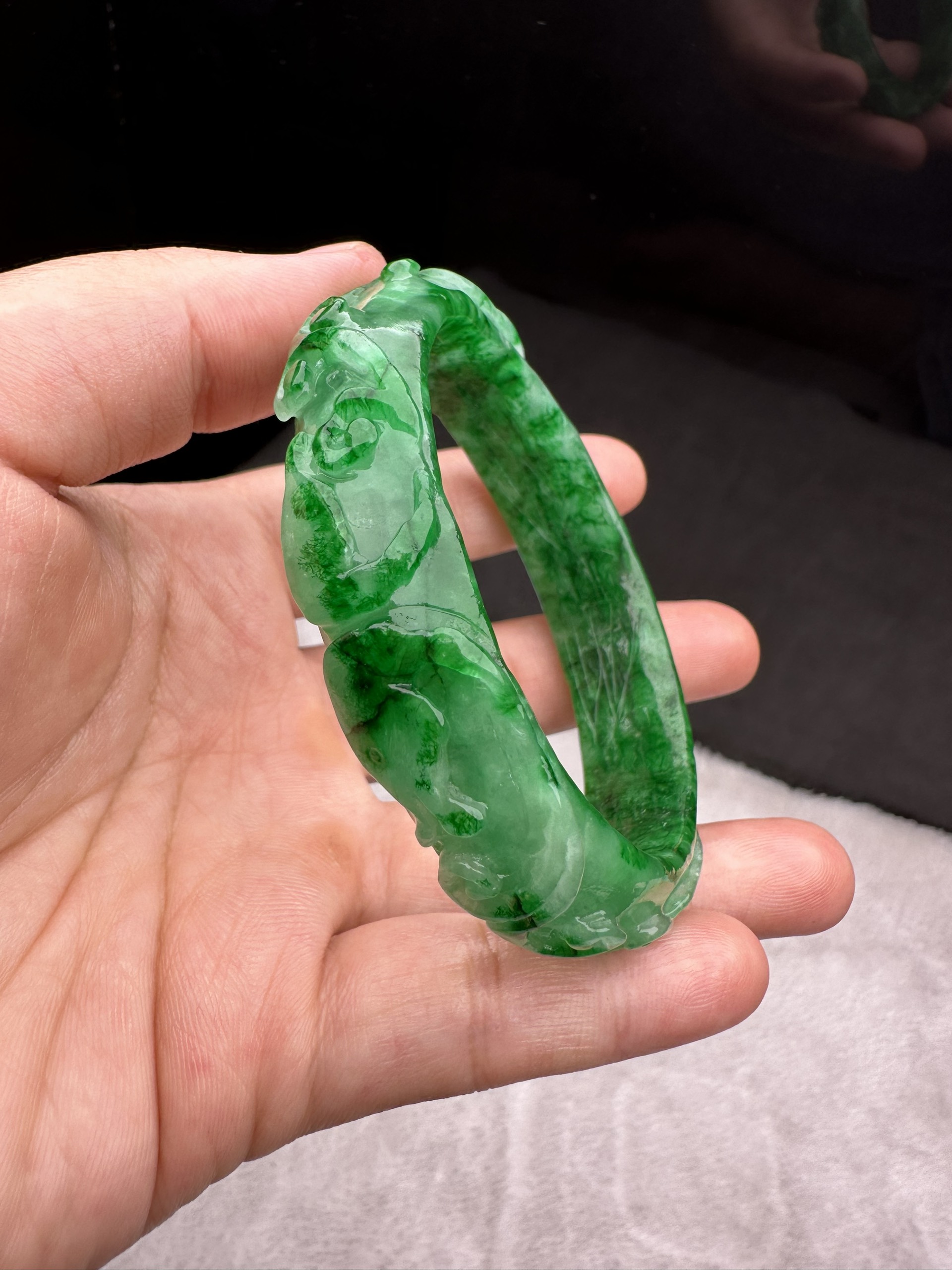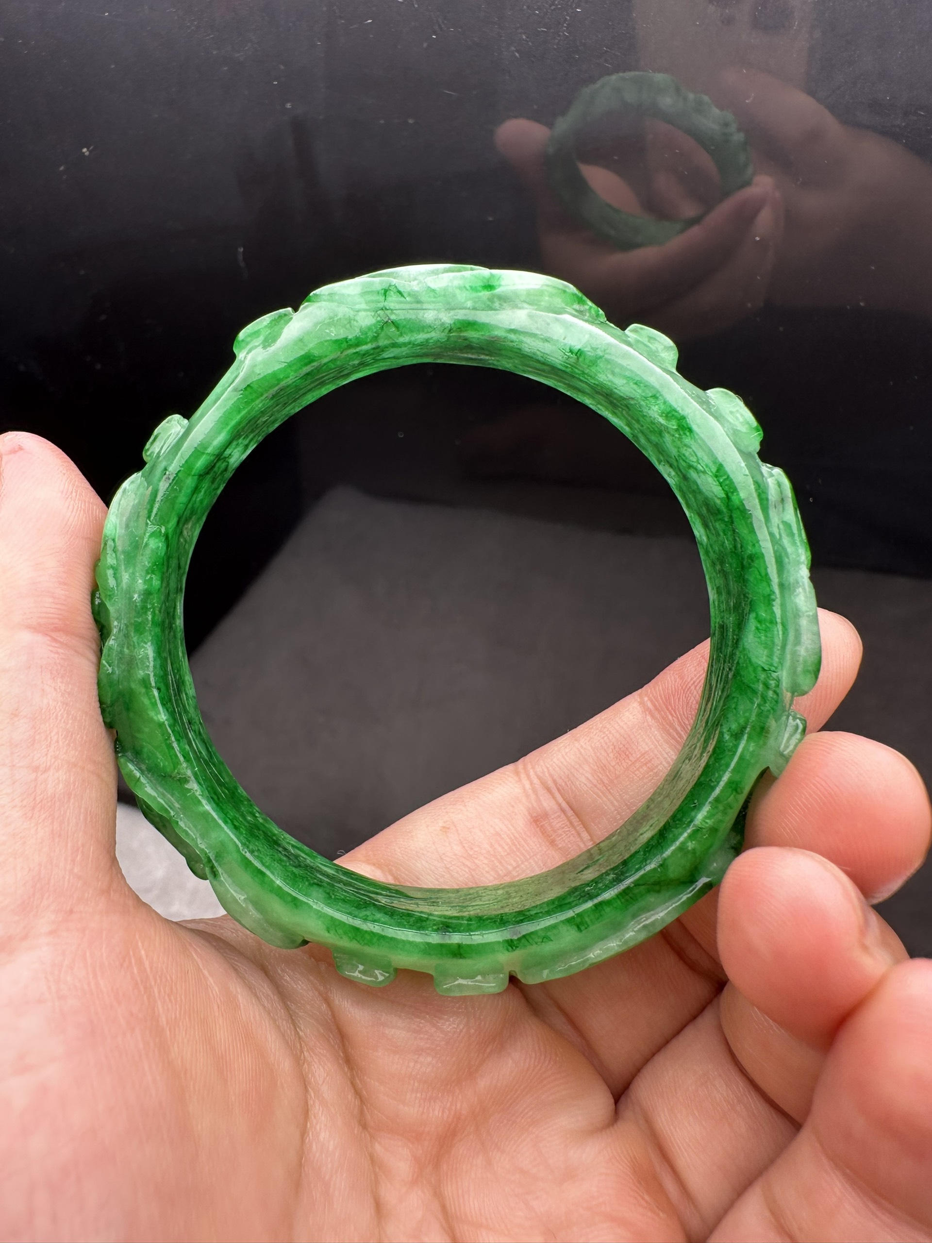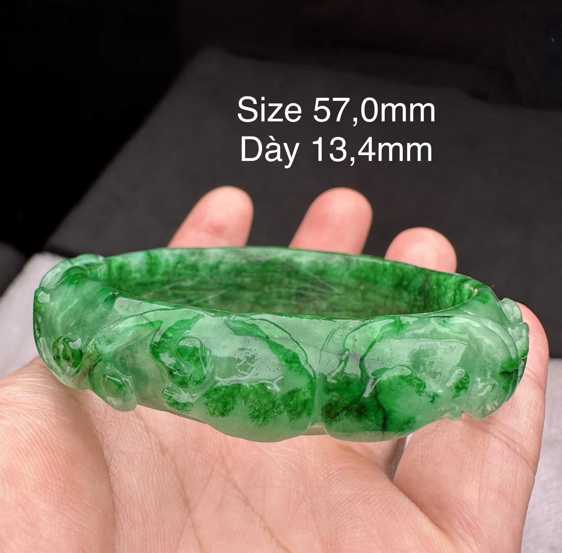 Vòng tay Ngọc bản liền chạm họa tiết.