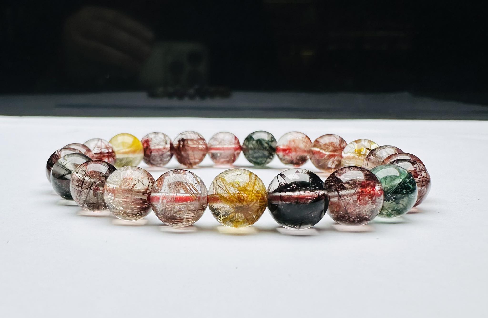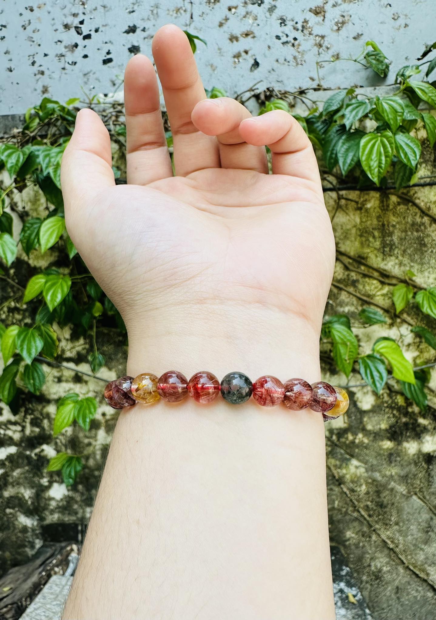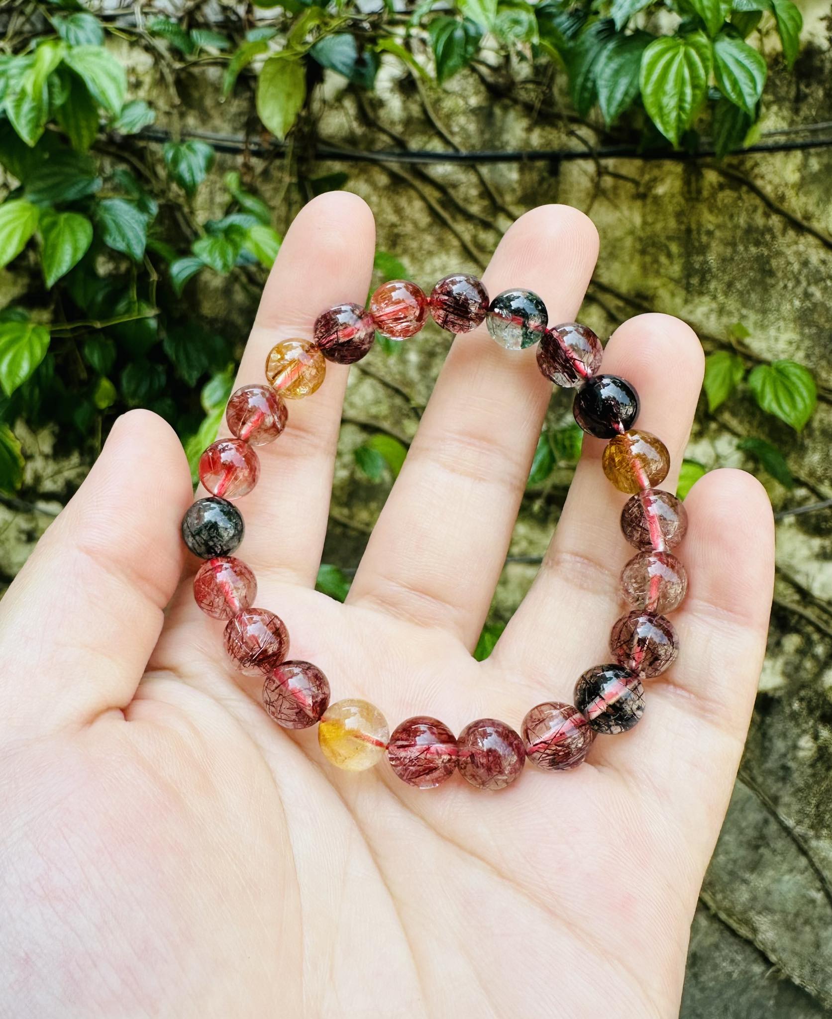 Vòng tay thạch anh tóc tam tài 8,6li trong, đẹp.