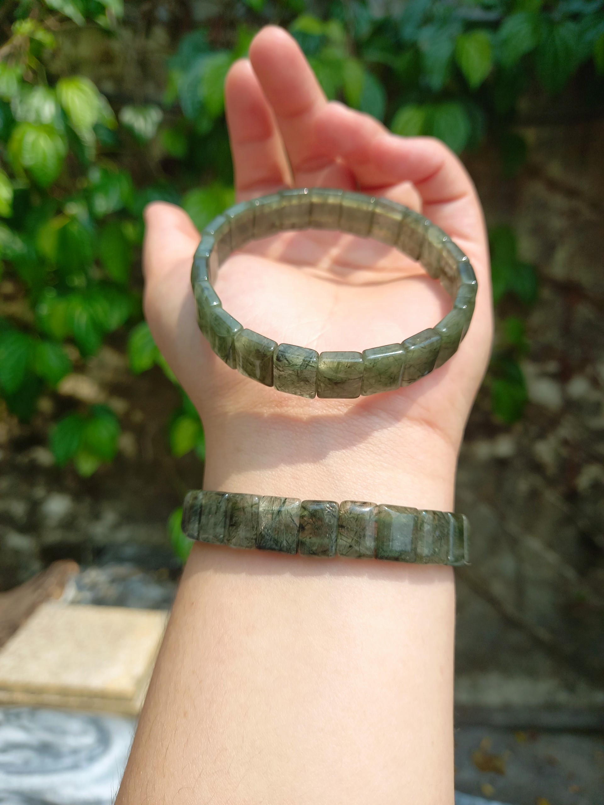 Vòng tay thạch anh tóc xanh bản tự nhiên