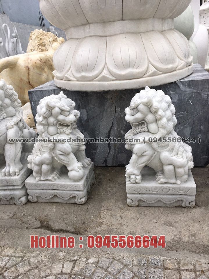 Tượng Kỳ Lân đá trắng non nước nguyên khối cao 70cm tại cơ sở điêu khắc đá mỹ nghệ non nước Huỳnh Bá Thơ. Trong truyền thuyết, Kỳ Lân đá là một loài linh thú thuộc tứ linh “Long, Lân, Quy, Phượng”. Nó mang trong mình một nguồn sức mạnh và sự thần bí linh thiêng. Kỳ Lân đá có phần đầu giống rồng, có hai sừng, thân hình giống hươu, phủ đầy vảy, lông đuôi dài, cuộn sóng. Thoạt nhìn, hình dáng và thần thái của Kỳ lân trông rất sinh động, mạnh mẽ, thần bí và tràn trề sức sống.