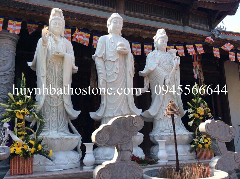 Tượng Tam Thánh bằng đá có độ bền cao, óng đẹp, thích nghi cực tốt với mọi điều kiện thời tiết. Sản phẩm được chế tác nhiều kiểu hoa văn sắc sảo độc đáo, tạo nên được hồn riêng của pho tượng.