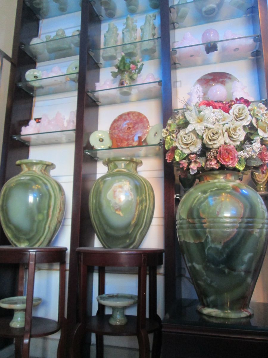 Tham quan làng đá, bạn không khỏi thán phục trước các tác phẩm nghệ thuật được chế tác từ đá, mỗi tác phẩm đều thể hiện nét tài hoa, tinh tế của các nghệ nhân. Tác phẩm thường có đủ loại hình thù của vạn vật, đặc sắc nhất là tượng các vị Phật, vị Thánh, Chúa, thần Vệ Nữ, các con vật huyền thoại như kỳ lân, rồng rồi đèn đá và các đồ trang sức bằng đá…