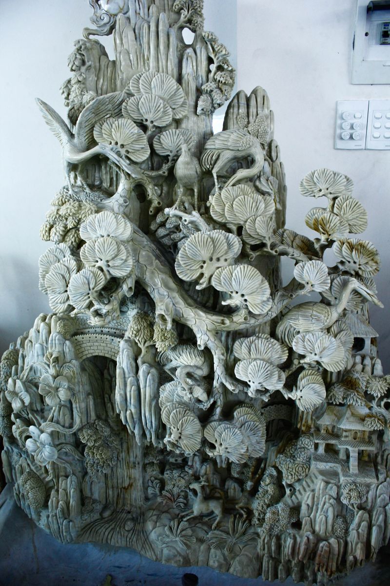 Ngày nay tác phẩm nghệ thuật bằng đá nơi đây đã có mặt ở nhiều nước Âu, Mỹ. Để làm nên những sản phẩm mỹ nghệ khá phong phú và đa dạng bằng đá cẩm thạch như: Tượng Phật, tượng thánh, tượng người, tượng muông thú, vòng đá đeo tay..., người thợ thủ công phải trải qua nhiều công đoạn chạm trổ công phu, tỉ mỉ. Nguyên liệu để làm nên các sản phẩm này là đá cẩm thạch, trước đây được khai thác ở núi Ngũ Hành Sơn.