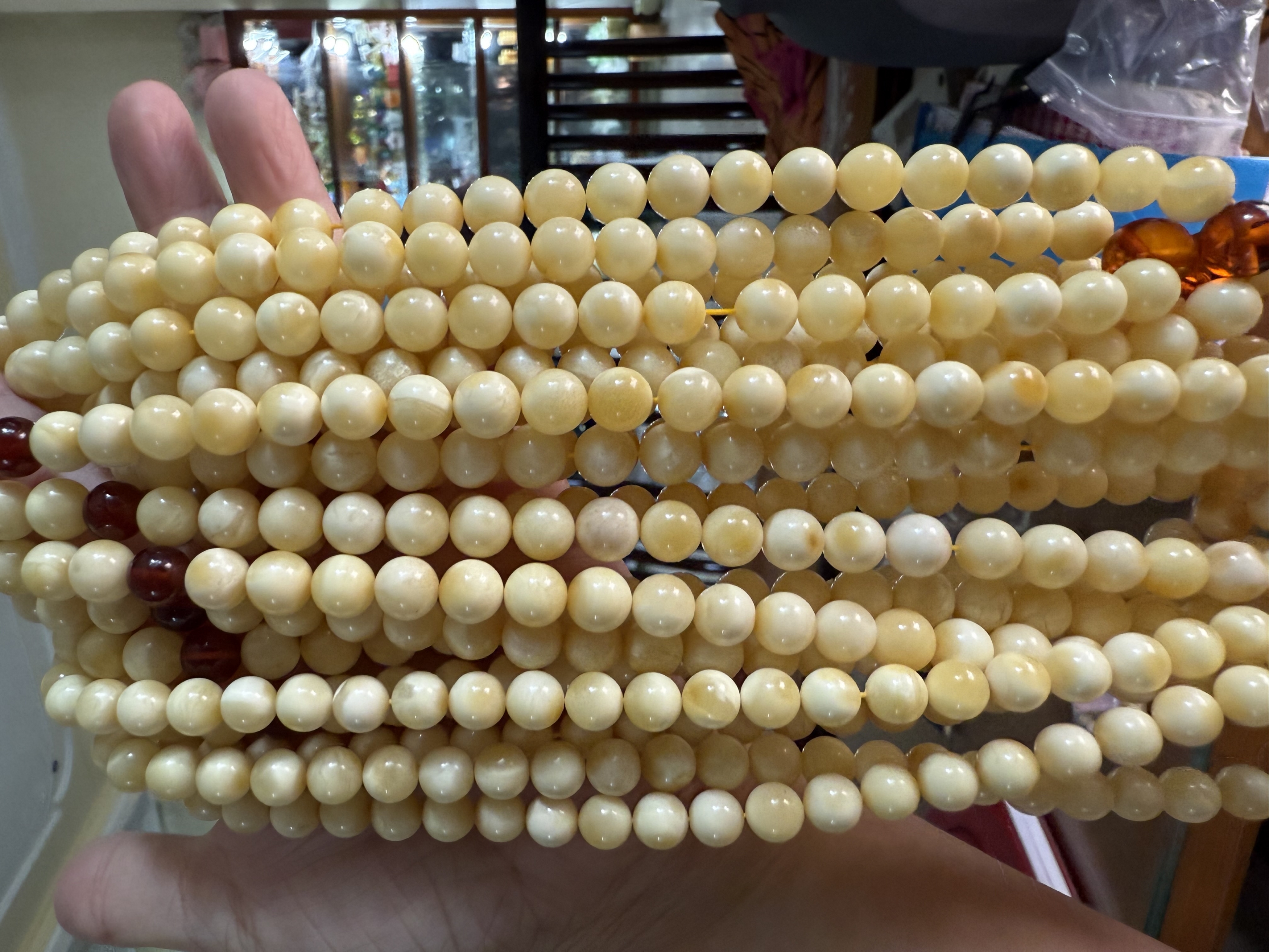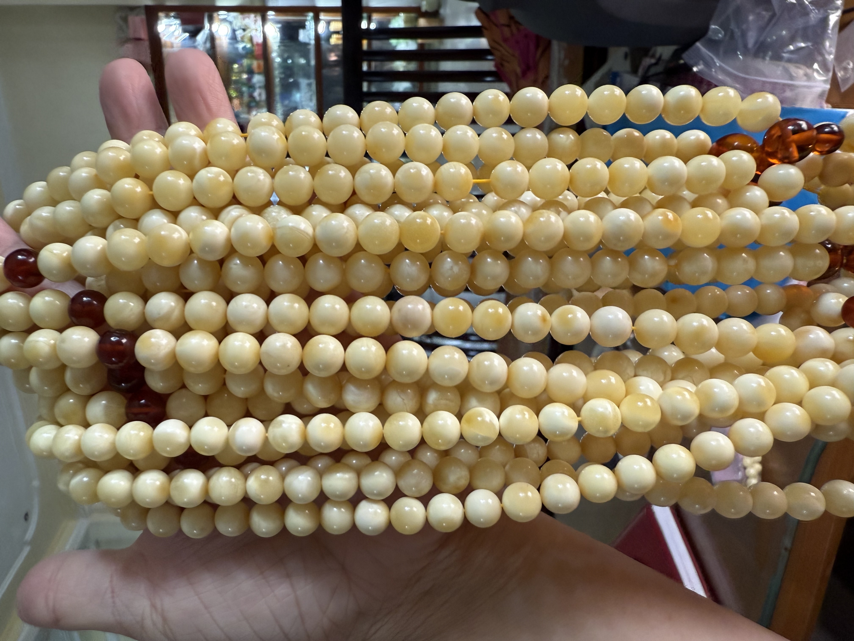 Chuỗi 108v hổ phách trắng bạch Lạp 9li.