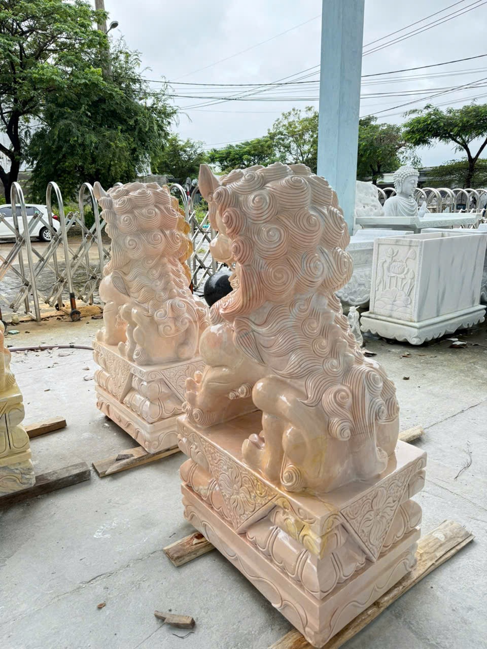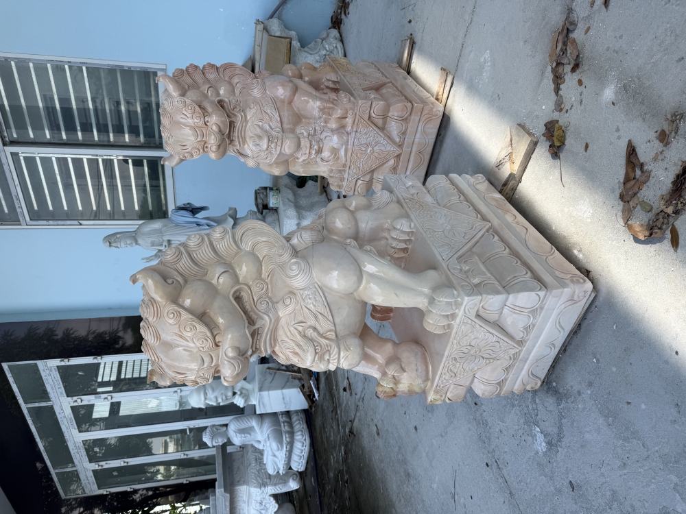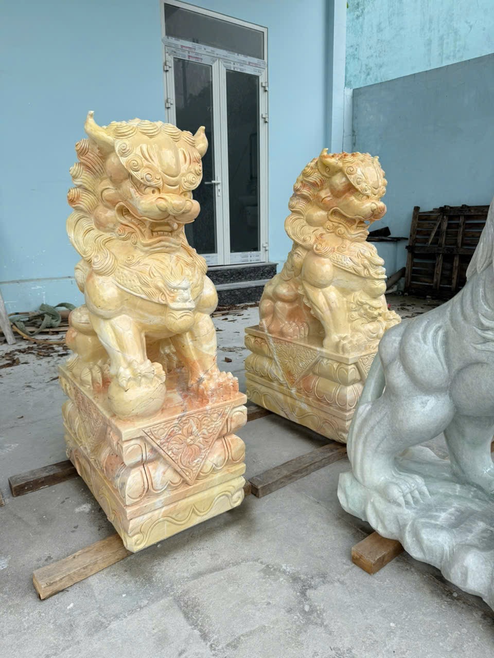 Tượng kỳ lân đá vàng cao 1,5 đế thấp.