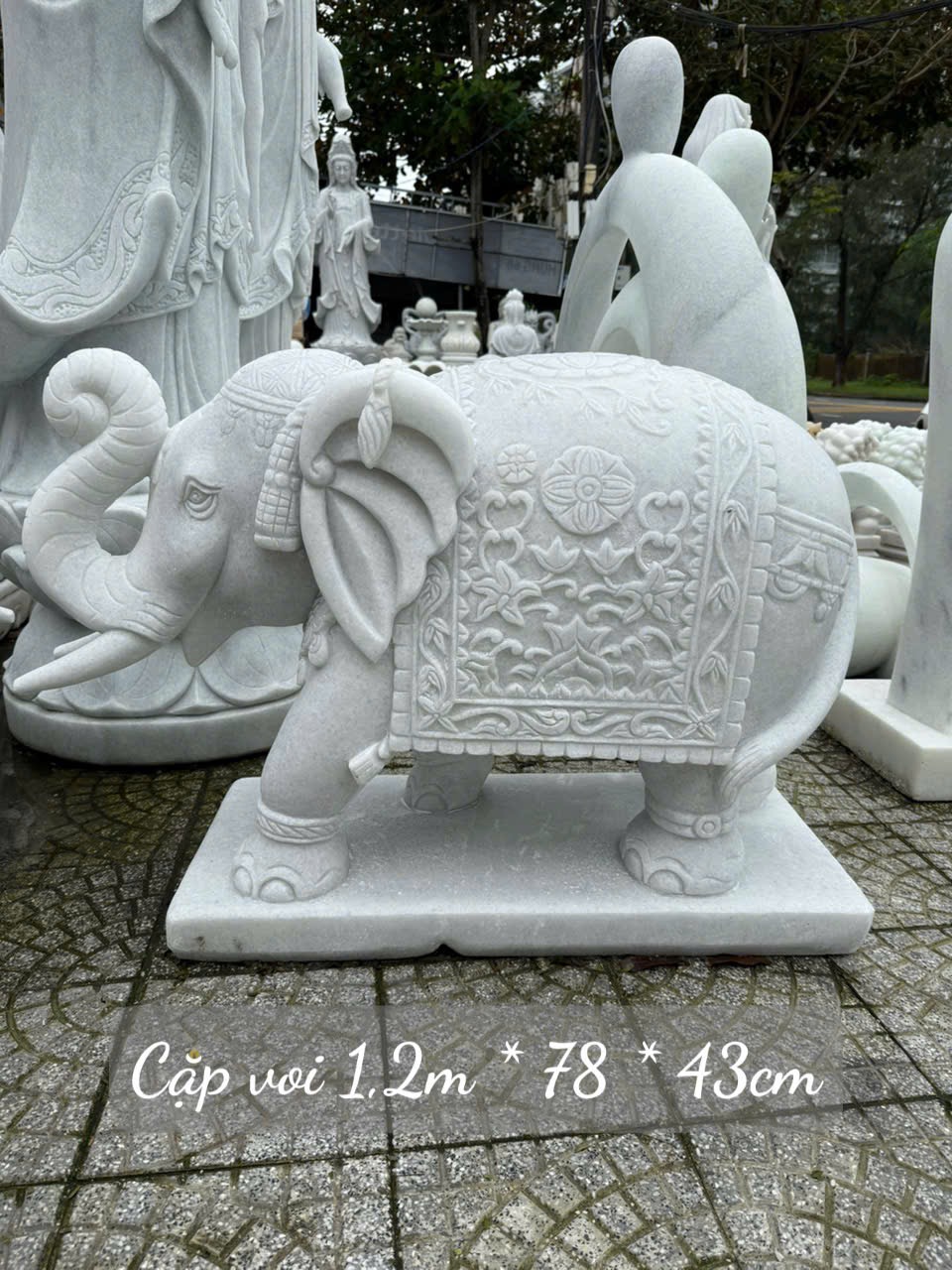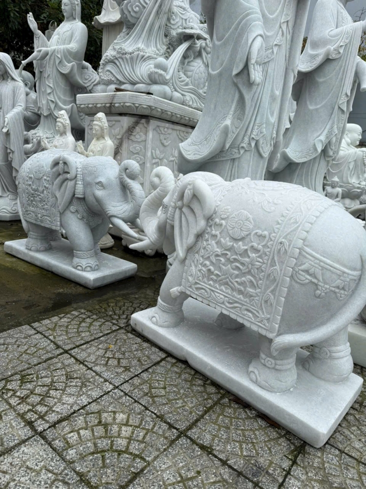Tượng Kỳ Lân đá trắng nguyên khối cao 1.8m