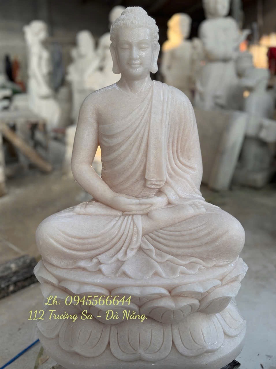 Tôn Tượng PHẬT THÍCH CA ngồi thiền cao 70cm đá cẩm thạch trắng