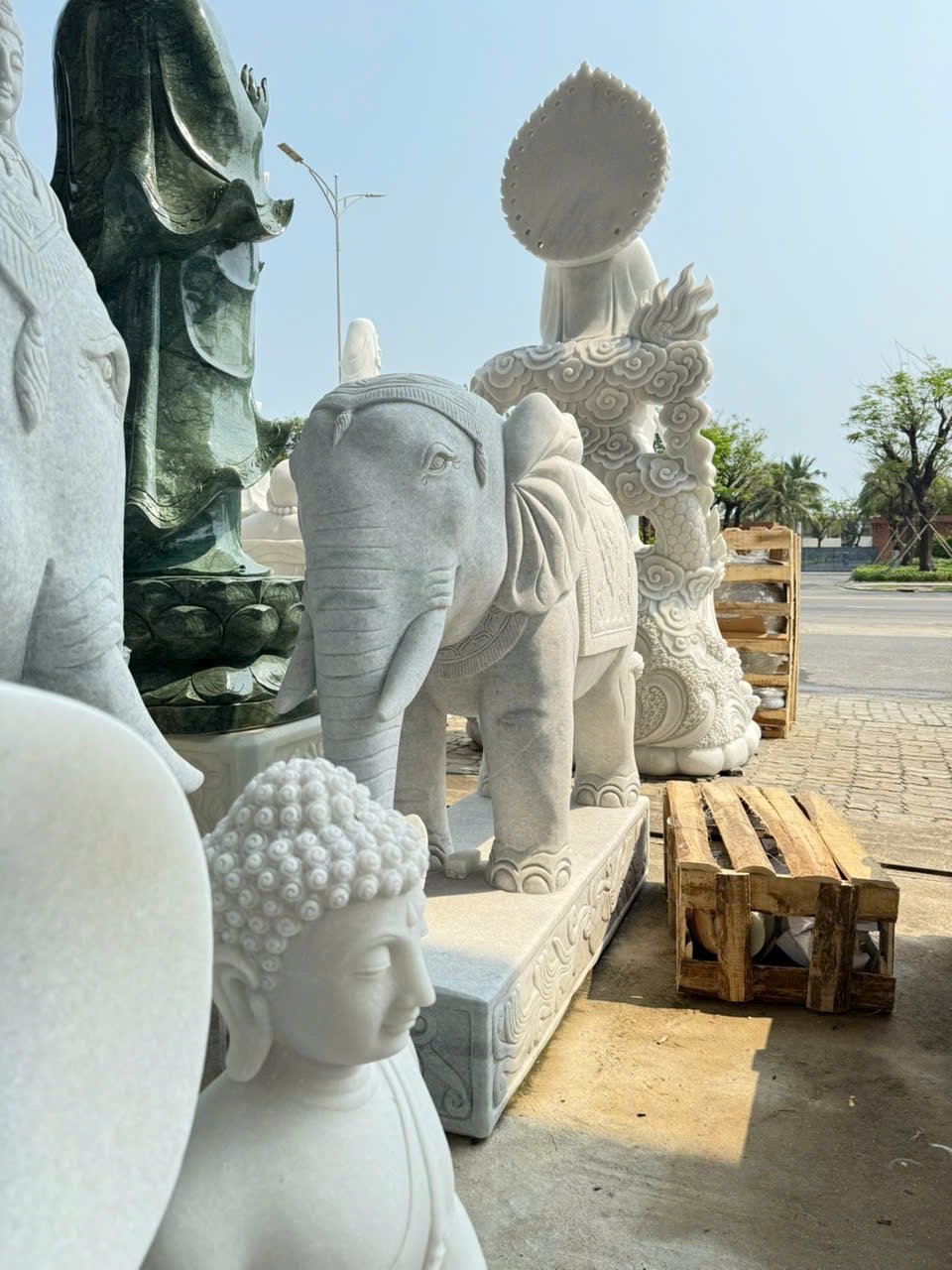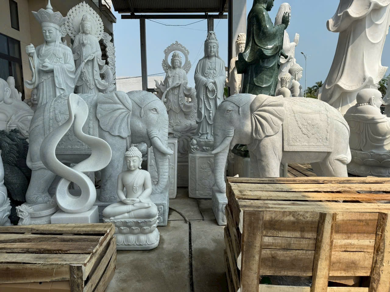 Tôn tượng Phật Quan Âm đứng cao 1,6m đá trắng nguyên khối non nước- đá nguyên khối, đẹp- giá thỉnh tượng 20 triệu.