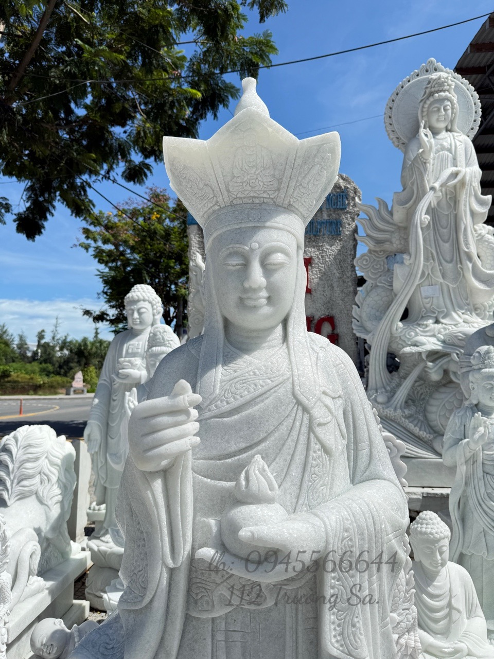 Tượng Bồ Tát Văn Thù - Phổ Hiền đá trắng nguyên khối