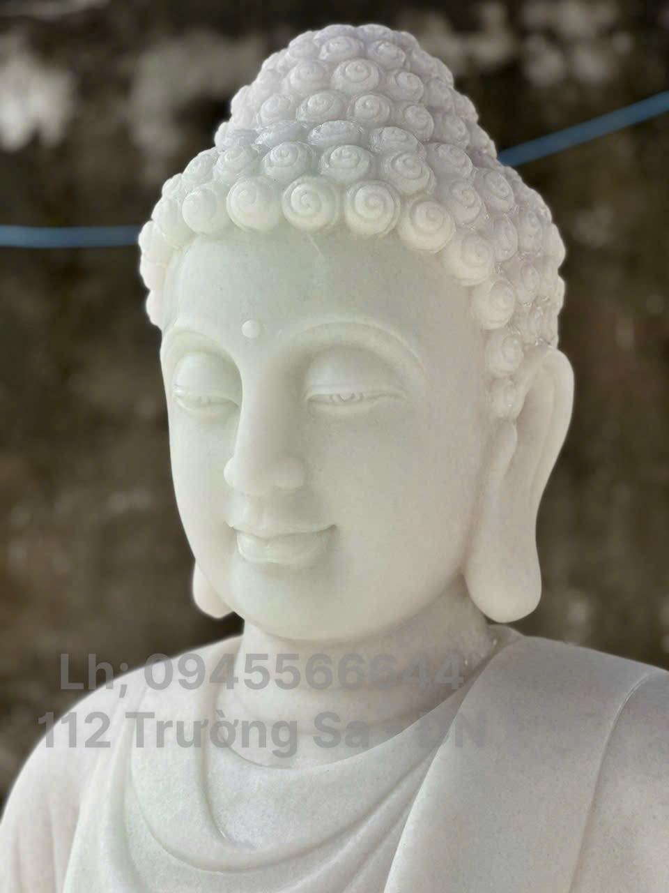 Tượng Phật Thích Ca Mâu Ni cao 1.6m đá trắng xanh nguyên khối