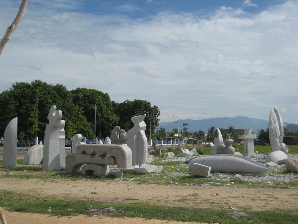After more than 45 days and nights of hard construction with hundreds of carvers, the creative labor between workers and the authors manipulated. Volume granite used for the works is 179m3. 30-4 To date, the closing date of the camp, with 100% of works completed. According to the Arts Council and the opinion of the sculptor, compared to 12 stone sculpture camp of the provinces in the country before, this is the largest-scale farms, with some authors and foreign participation most, the scale size of the most spectacular phenomenon, with bold contemporary art, highly symbolic. A songwriting had left the city of Phan Rang monumental stone statues, modern, will be staged in the marine park, plaza areas - the central monument Phan Rang - Thap Cham. Through personal creative ideas, the authors have been blowing on the rocks inanimate different emotions, express the diversity in style by authors from many different cultures, from art background with trends and concepts, visual arts degree, offering different levels of civilization.