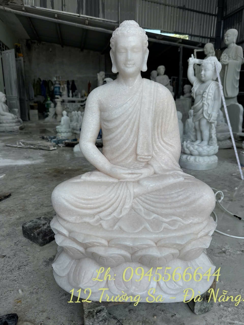 Tôn Tượng PHẬT THÍCH CA ngồi thiền cao 70cm đá cẩm thạch trắng